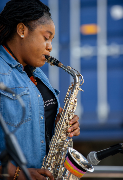 Audiences then enjoyed original jazz-infused, Congolese-inspired music from Gemima Band led by Congolese frontwoman and saxophonist Gemima Mbuyi-Tshimanga who has toured to Belgium; Paris, France; Senegal, and Portugal.